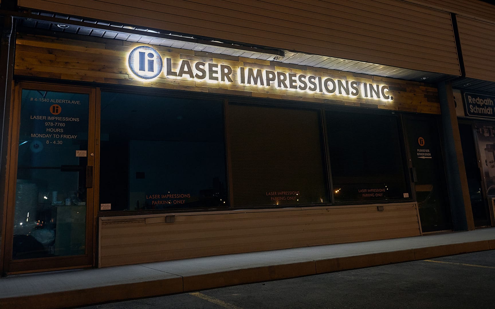 Laser Impressions Inc. refreshed the existing exterior sign at the Saskatoon International Airport. These are individual aluminum letters that have been primed, painted and pin-mounted.